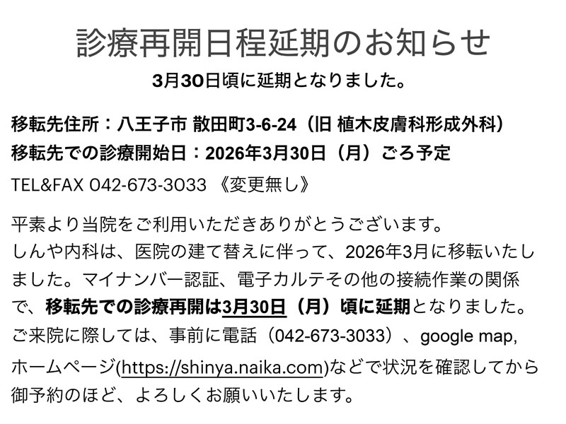 しんや内科は、医院の建て替えに伴って、2026年3月より移転